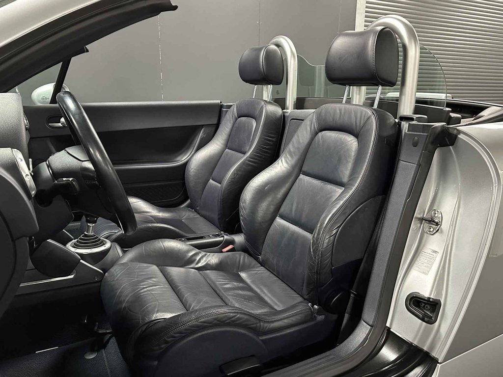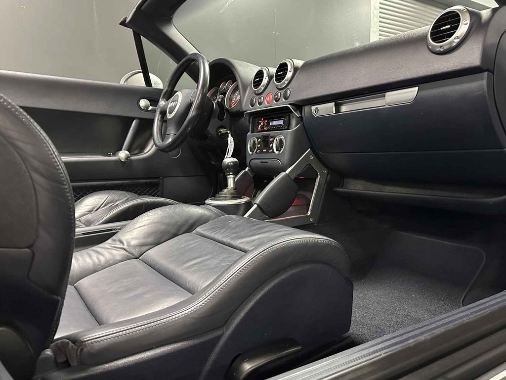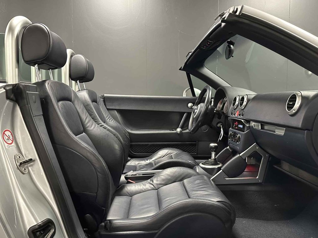 Laat u niets wijsmaken, deze Audi TT Roadster biedt alles wat u van een auto verlangt. Deze auto komt uit 2004. Met zijn benzinemotor en handgeschakelde vijfversnellingsbak is dit een prima auto voor nog vele kilometers. Maximaal comfort en stijl krijgt u dankzij het lederen interieur. De sportstoelen houden u en uw bijrijder goed op z'n plek tijdens het accelereren en bij het nemen van scherpe bochten. Met het elektrisch bedienbare dak kunt u moeiteloos genieten van elke zonnige dag. Ook is de auto voorzien van: 16 inch lichtmetalen velgen, sportonderstel, windscherm, metallic lak, elektrisch bedienbare ramen voor en elektrisch verstelde en verwarmde buitenspiegels.